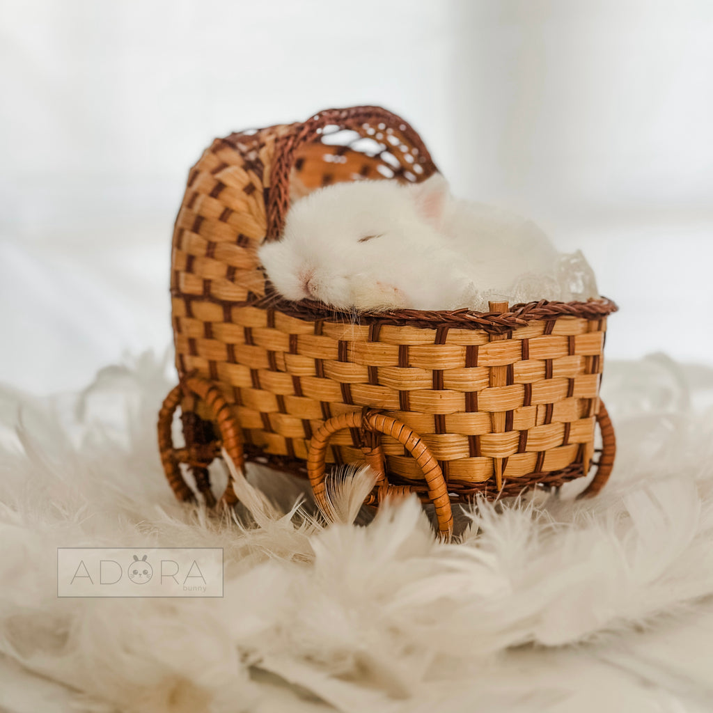 Prince Niblet is a blue-eyed white Netherland Dwarf buck with a heart as soft as his fur. This little prince loves giving kisses and soaking up affection — a true mama’s boy through and through. Gentle, loving, and irresistibly sweet, he’s impossible not to adore.